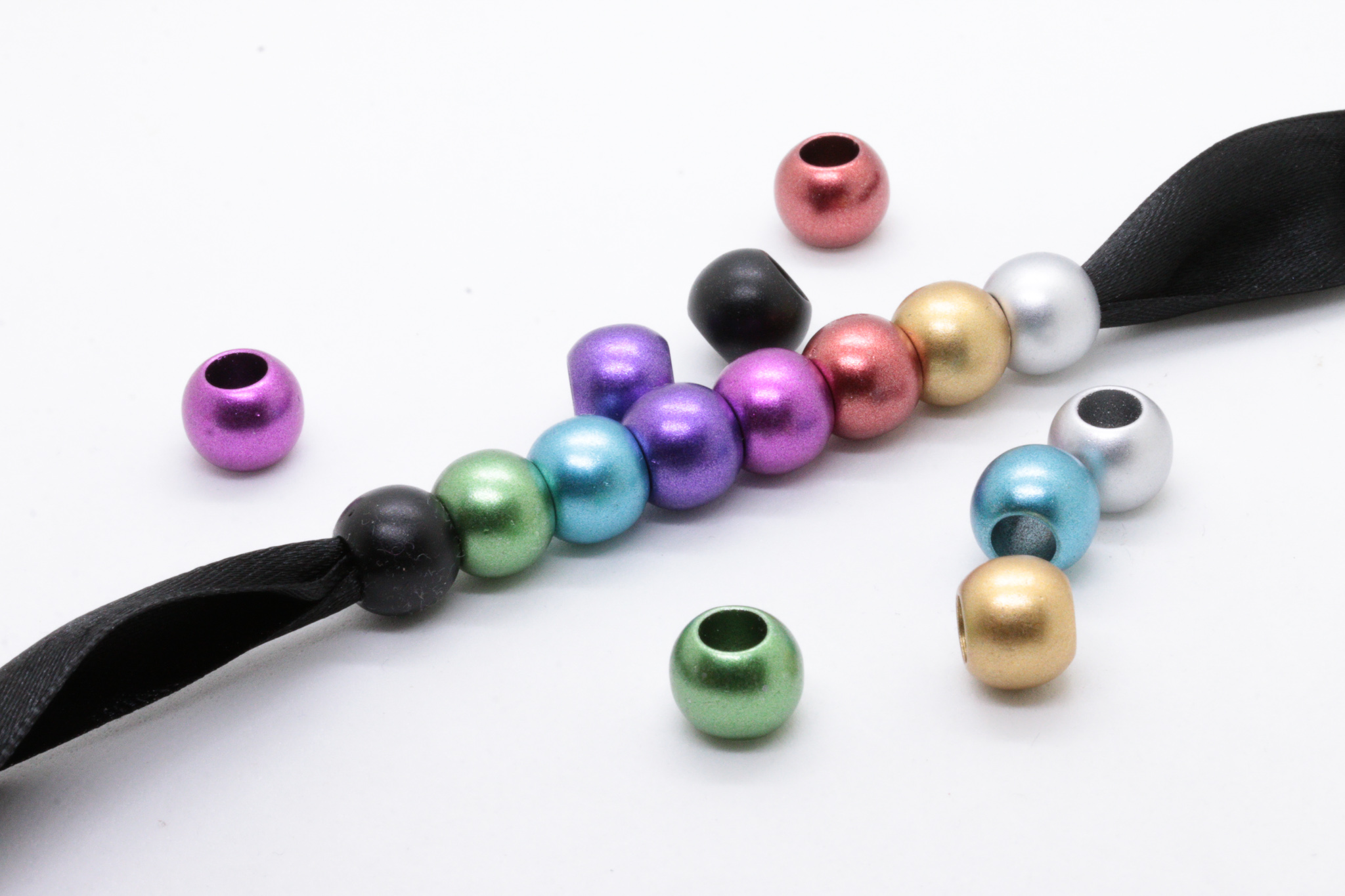 Perlen (metallic-matt) in tollen Farben (u.a. Türkis-, Grün-, Pink-, Lila-, Gold-, Silber, Orangetöne) aus Acryl.