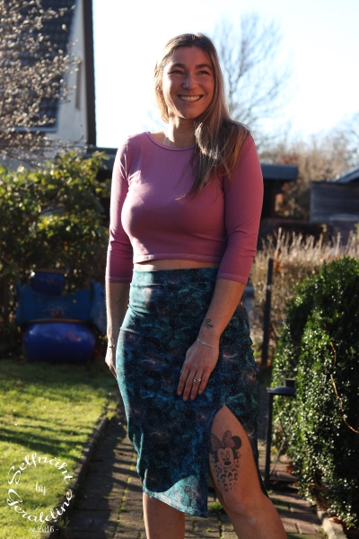 Du kannst zwischen drei Rocklängen wählen. Für die kurze und die normale Länge ist der Schlitz optional. Für die lange Variante ist der Schlitz unerlässlich, um gut gehen zu können.
