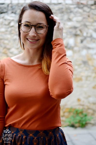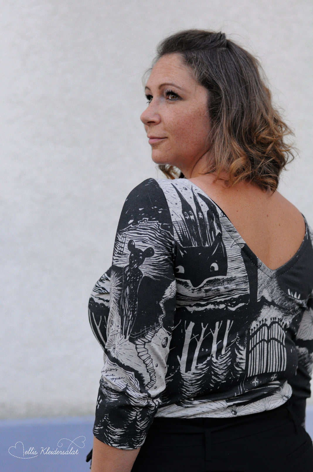 Das Oberteil „Rebekka“ ist ein figurbetontes Shirt mit 2 unterschiedlichen Rückenausschnitten.